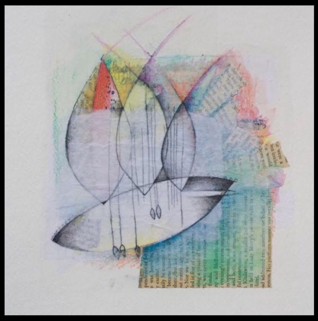 Another collage, more found pieces of paper. Whether it be wood, fabric, paper or furniture, I love assembling unused items to create something, adding pencil or paint stokes and shading to unify 🙂