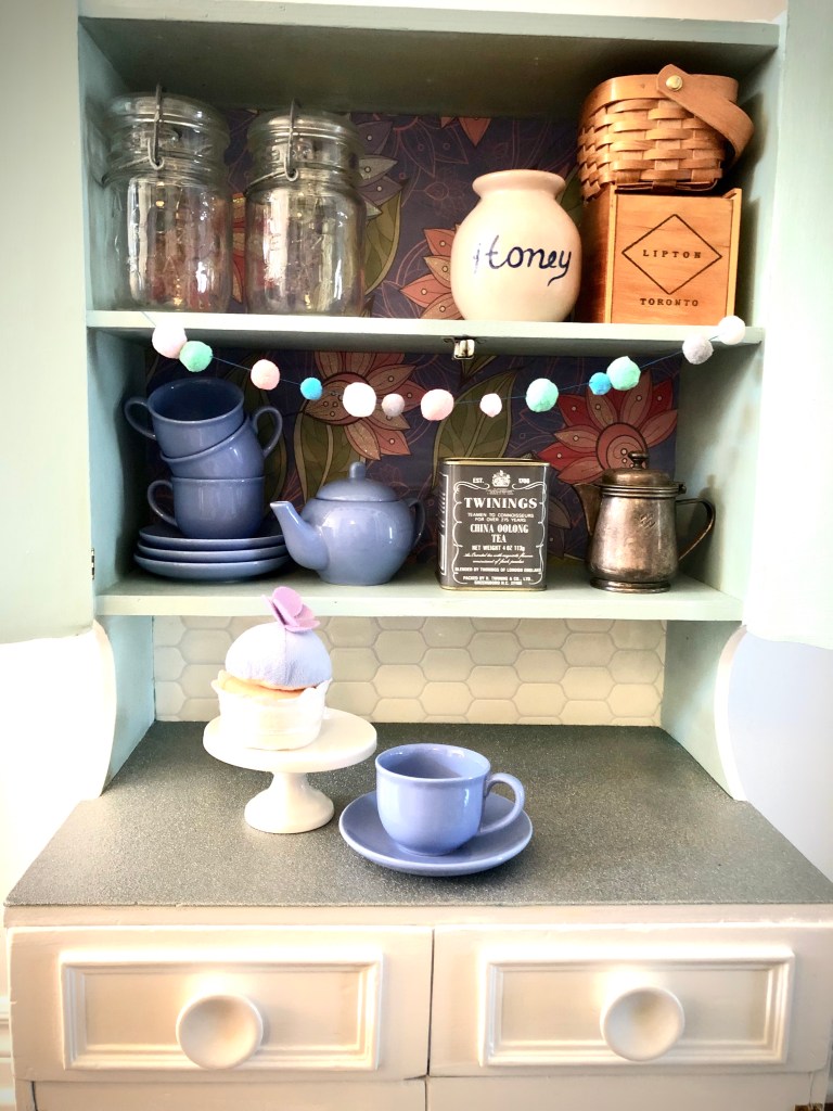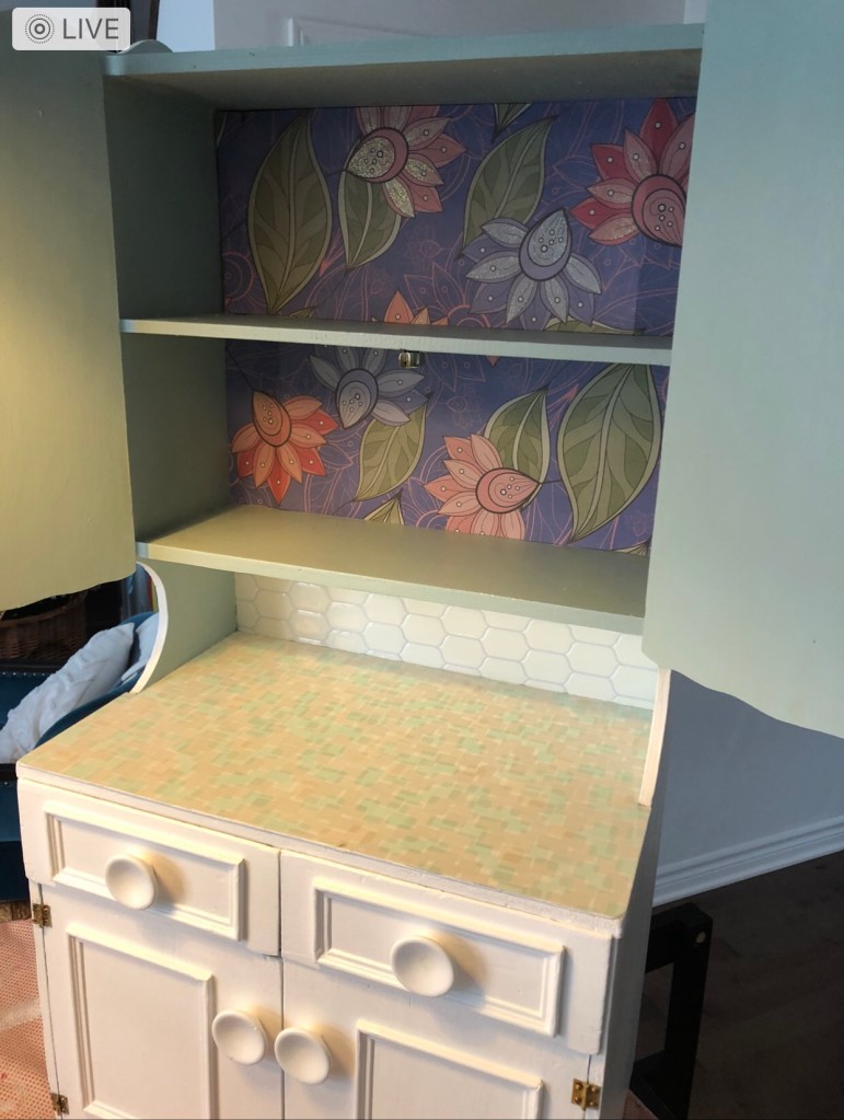 But now the counter didn’t seem quite right, clashing with the beautiful gift bag interior of the cabinet interior. That’s the thing… sometimes when you embark on a journey into modifying things, there’s a bit of a domino effect and you end up changing everything…