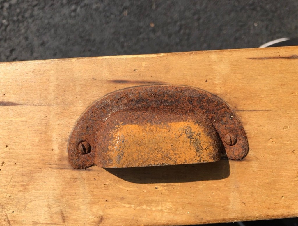 Once finished, I sanded the drawer pull and was happy to find a solid silver coloured pull. Since it will not be in contact with water or humidity, I didn’t cover it with a protective coat. It should not rust over.