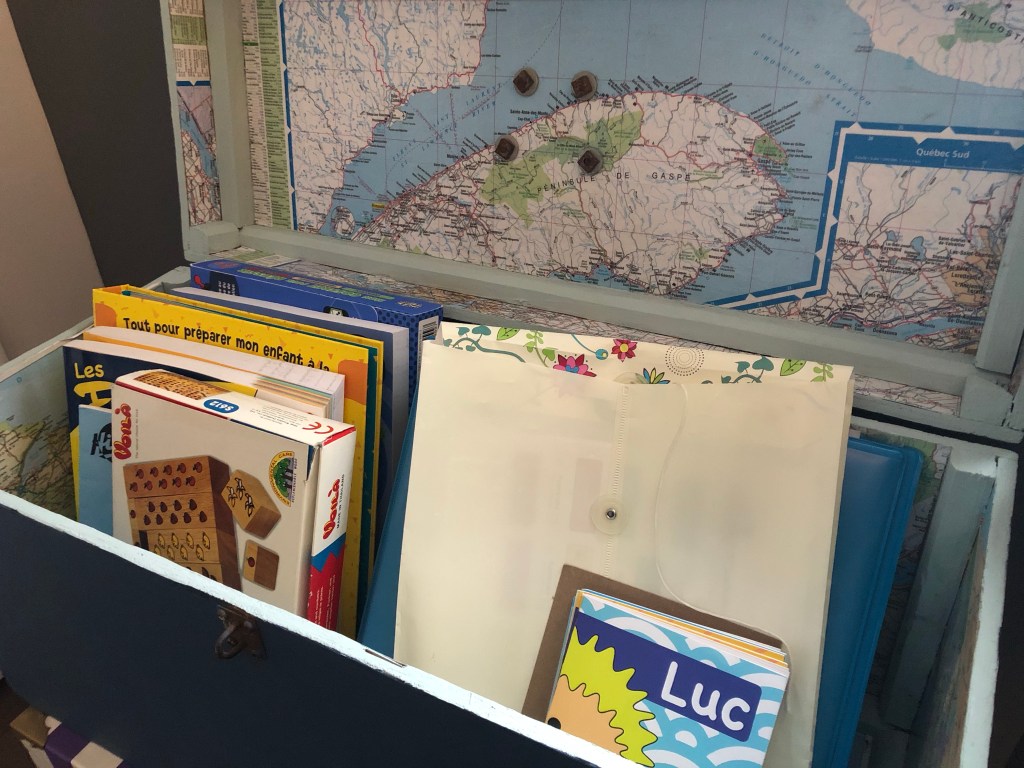 I decided to use a chest from a previous blog post to store schoolbooks, placing it right next to the desk.